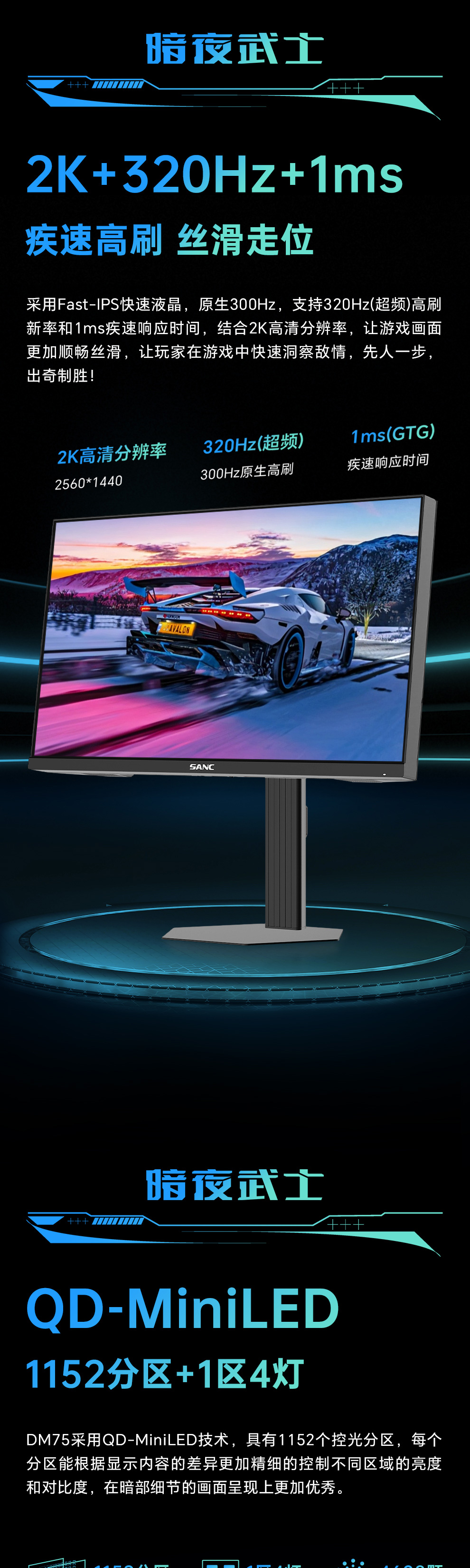 DP1.4: 2560*1440 260Hz 10bit(8bits+FRC)