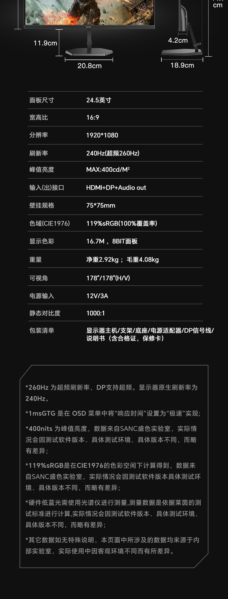 VESA尺寸:75*75mm