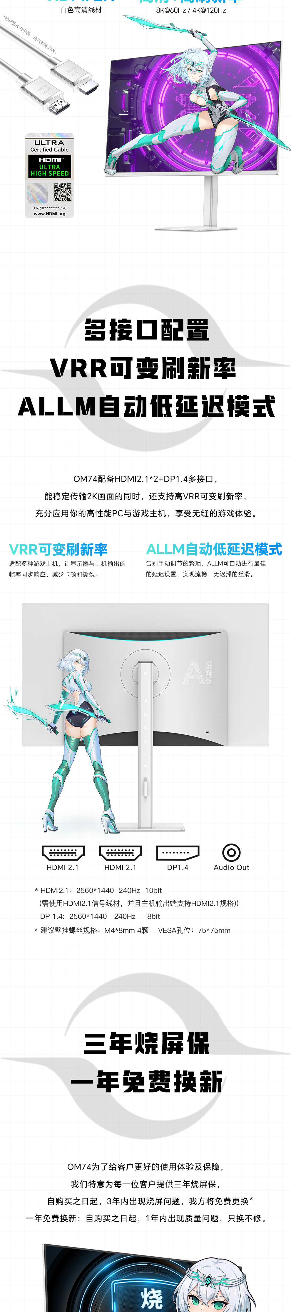 输出(入)接口说明: 2*HDMI 2.1 + DP 1.4 + Audio out