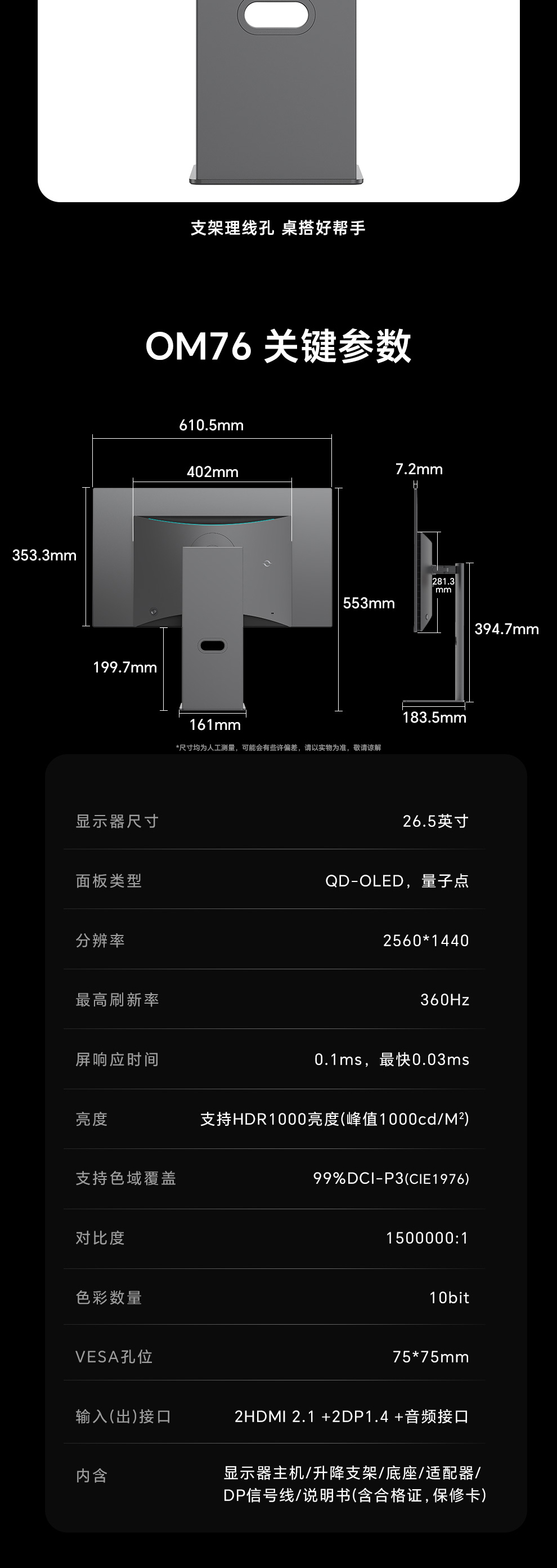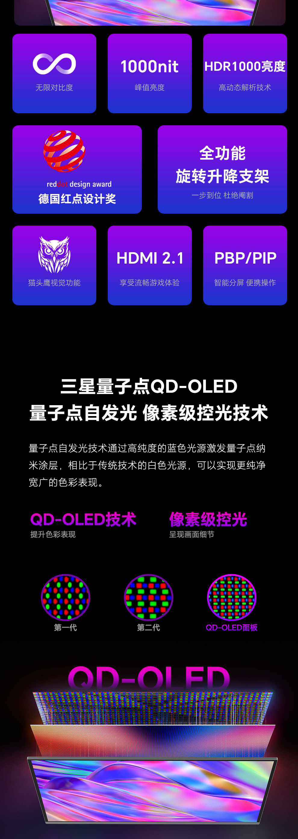 面板:三星量子点QD-OLED