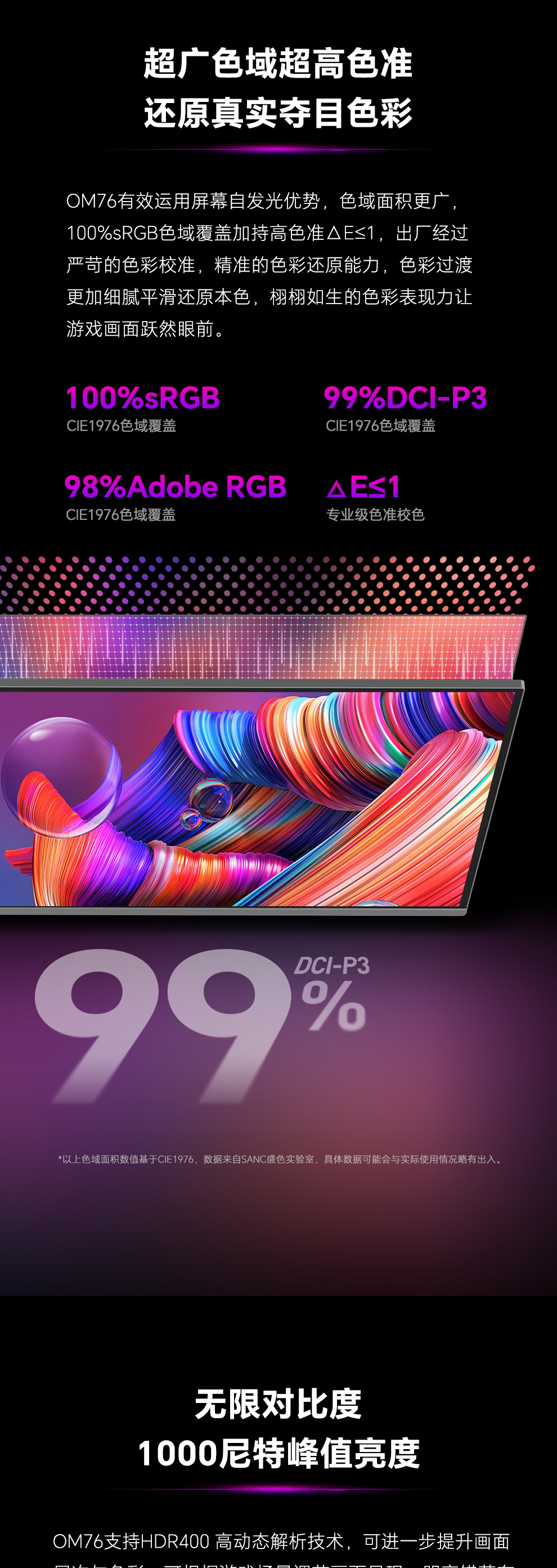 色域覆盖率:100%sRGB(CIE1976)